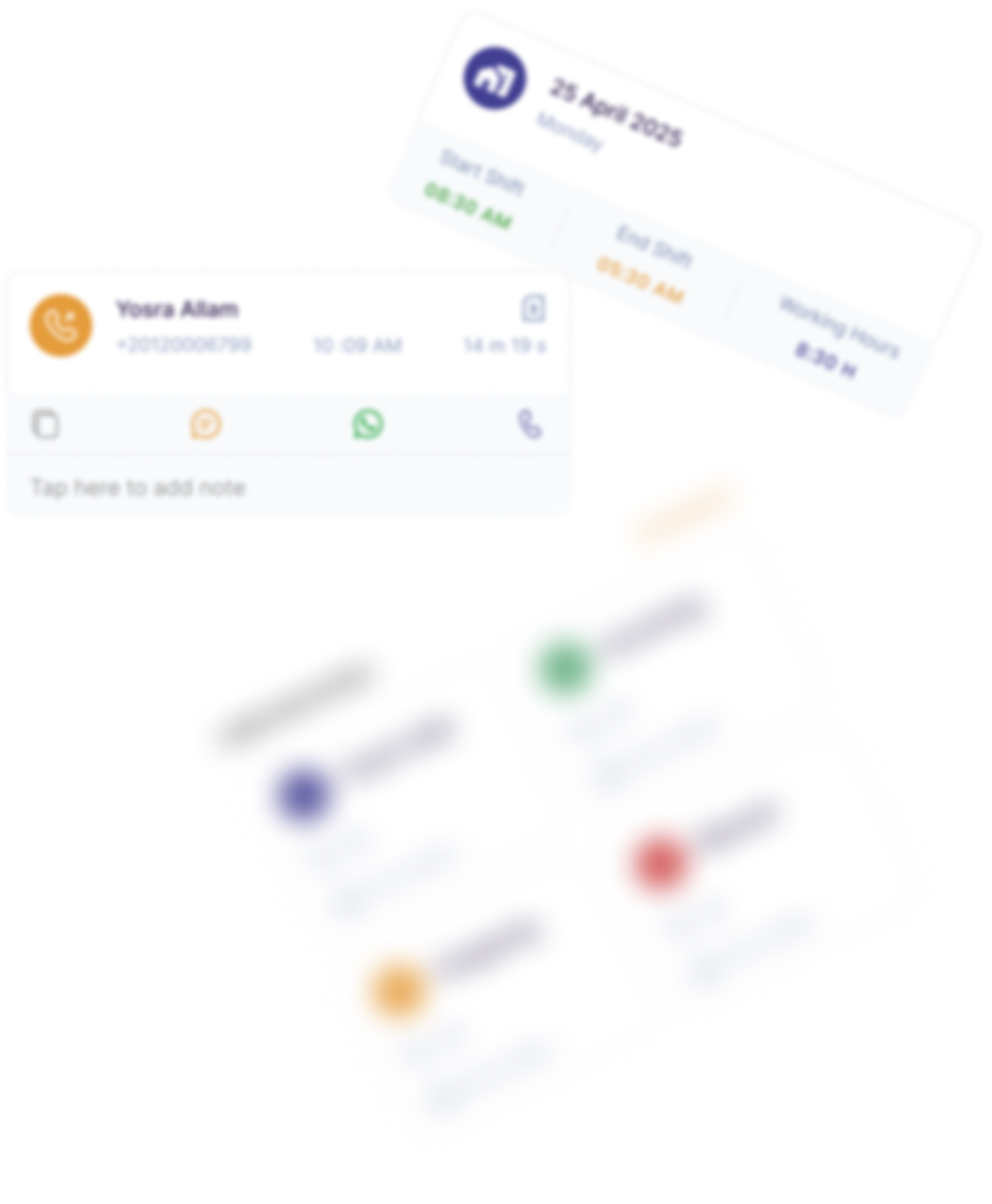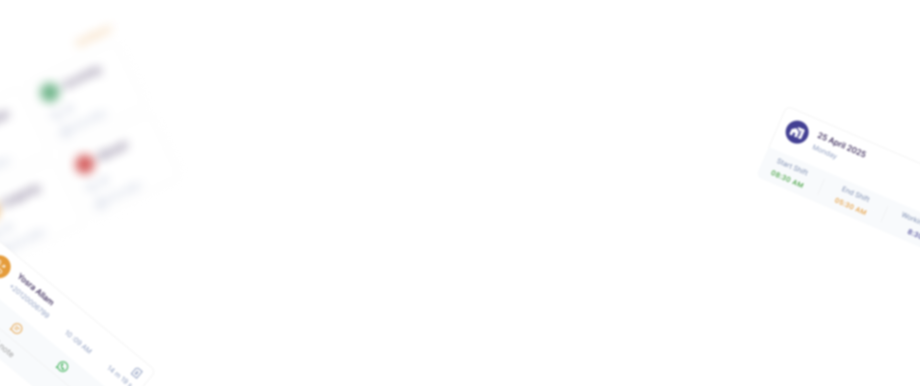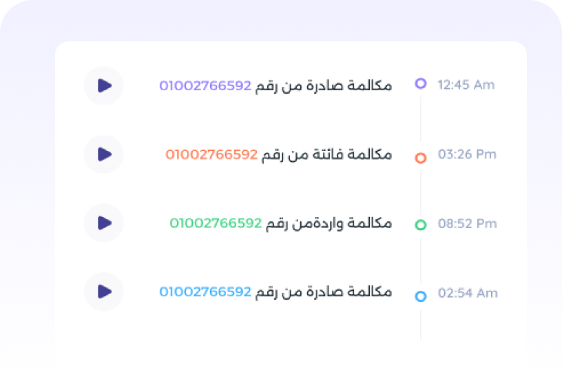 تتبع المكالمات، تسجيلها، متابعة الدوام، وجدولة أيام العمل – كل شيء تحت سيطرتك بدقة وسهولة.