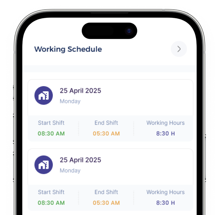 تابع الحضور والانصراف بدقة، واعرض أوقات الدوام اليومية بكل سهولة.